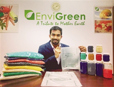 憑借這款塑料袋,小哥還入選了印度《福布斯》雜志2017年的“30 under 30”。眾所周知,做到完全無污染的綠色產(chǎn)品,成本往往會翻幾倍不止。但小哥發(fā)明的塑料袋,僅比普通塑料袋價格高出35%。