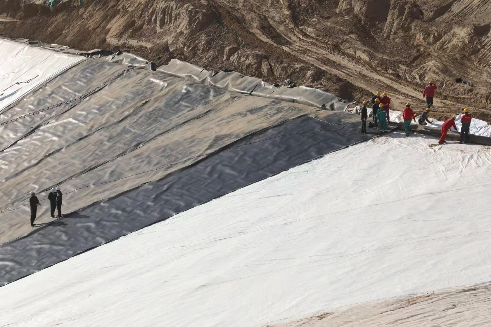 針對(duì)這些問(wèn)題,該公司副總經(jīng)理陳雨一一解答了記者的疑問(wèn):“‘巨坑’原是一處廢棄的溝地,面積約300畝?,F(xiàn)經(jīng)特殊處理后作為鉆井巖屑的處置填埋場(chǎng),對(duì)其進(jìn)行無(wú)害化處理?!萏铩强茖W(xué)合理化設(shè)計(jì),既迎合自然地貌屬性,也有防汛、導(dǎo)流等人工科學(xué)化預(yù)處理,雙重增強(qiáng)填埋場(chǎng)的地理穩(wěn)固性。工人們正在鋪設(shè)防滲膜。車上拉的都是固體巖屑。這個(gè)‘泥漿不落地’工藝流程的每個(gè)細(xì)節(jié)不管是在填埋場(chǎng)還是鉆井現(xiàn)場(chǎng)均有體現(xiàn)……”