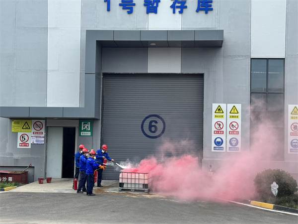 本次演練事故場景模擬1號暫存庫有機溶劑出庫時,由于碼放不穩(wěn)導致有機溶劑泄漏、起火、人員受傷事故,根據(jù)事故的發(fā)展情況,先啟動III級應急響應后啟動II級公司級應急響應的事故場景。演練中,各演練小組充分發(fā)揮各自職能,做到了思想統(tǒng)一、職責明確,服從指揮,整個演練緊張有序,效果顯著。